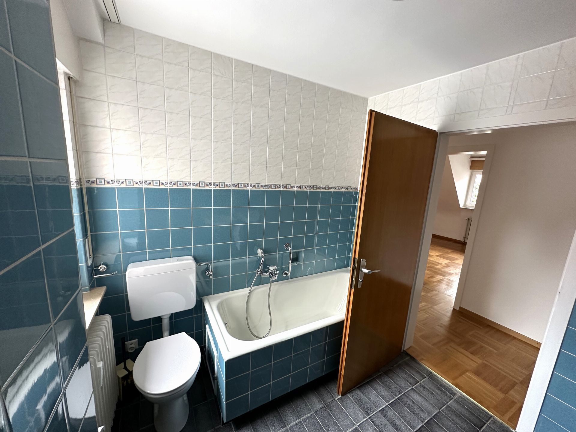 Bad mit Fenster, Dusche und Badewanne